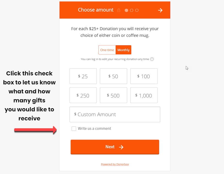 A $25+ Donation will receive your choice of either coin or coffee mug.